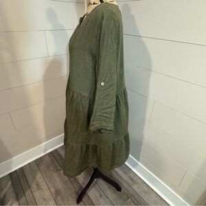 Bellambra Olive Green 3/4 Sleeve Linen Dress - Large