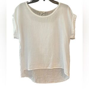 Bellambra Sz S White Italian Linen High Low Lace Back Flowy Relaxed Boho Blouse