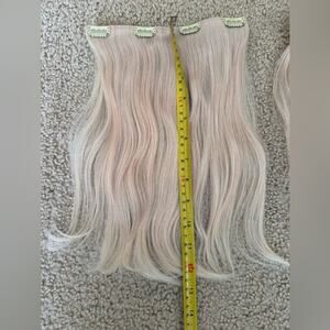 This listing includes a complete 5-piece set of authentic BELLAMI Silk Seam clip-in extensions in stunning Platinum Blonde: