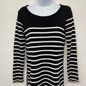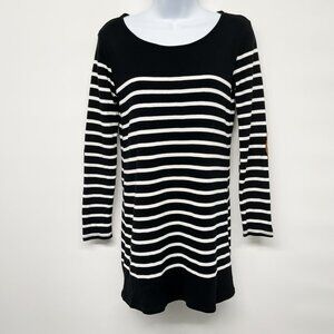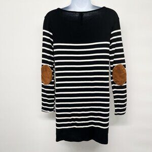 Bellamie Striped Long Sleeve Elbow Patch Tunic Basic Top Shirt Black White Small