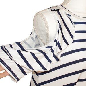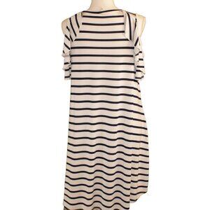 Bellamie Womens Small White and Navy Blue Stripped Peek a Boo Shoulder Comfy Dress