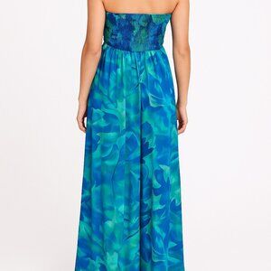 BellanBlue Blue Green Strapless Floral Jumpsuit NWT Size Medium Smocked Bodice