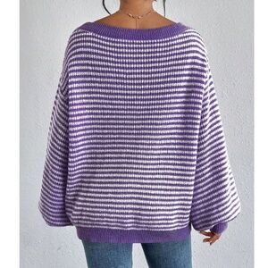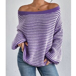 BellanBlue Purple and White Off-the-Shoulder Sweater