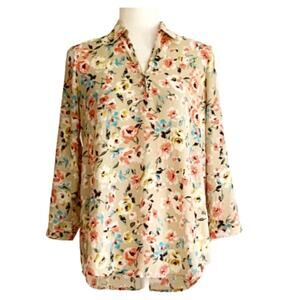 Bellatrix Blouse Shirt Semi Sheer Floral Button Front Blouse Top Size Small