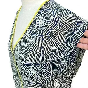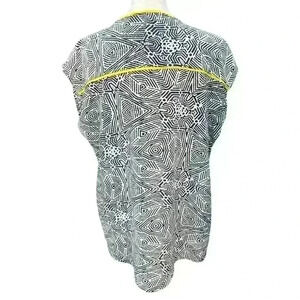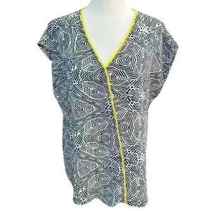 Flowy, relaxed silhouette with faux wrap & neon yellow contrast trim.