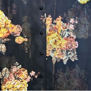 Bellatrix Floral Blouse S Semi Sheer Top Button Up Quilted Silky Long Sleeves