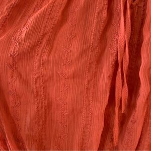 Bellatrix Red Orange Sheer Tunic Blouse XS. EUC. Tie at neck, elastic sleeves and waist.