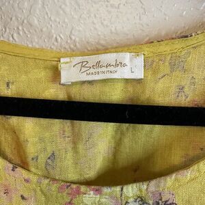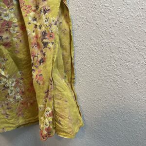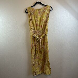 Bellaurbia Dress Sleeveless Floral Linen Midi Size L Yellow Gold Pink Boho Slits