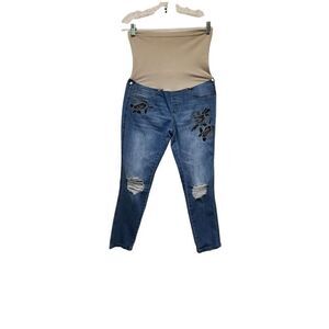 * Bella Vida Maternity Jeans Distressed Floral Pants size small. These jeans are in is in excellent pre-owned condition. No stains, rips, or any signs of wearing to the fabric.