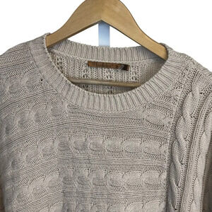 Belldini Asymmetrical Bat Wing Short Sleeve Cable Knit Ivory Sweater Women's XL