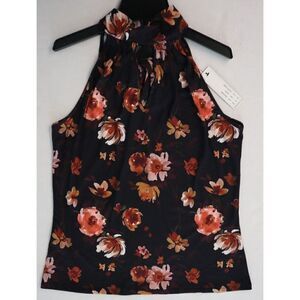 Belldini BK210548 Women Sz XS Black Combo Floral Print Reversible Halter Top $78