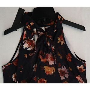 Belldini BK210548 Women Sz XS Black Combo Floral Print Reversible Halter Top