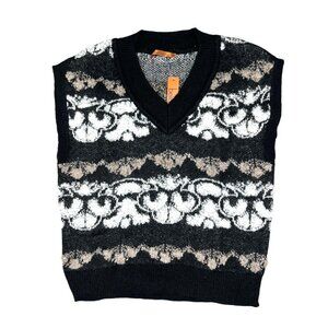 Belldini Black, White & Mocha Patterned Sleeveless Knit Sweater Vest - Size Medi