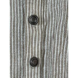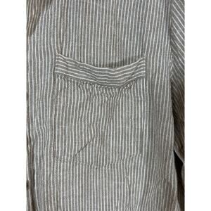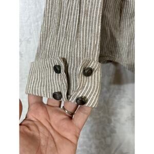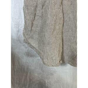 Belldini Button Up 2X Tan White Striped Linen Blend Long Sleeve