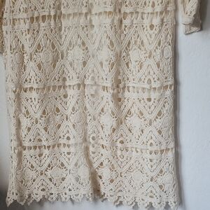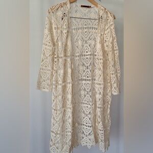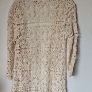 Belldini Chochet Cardigan Boho Coverup Tan Long Sleeve Size S