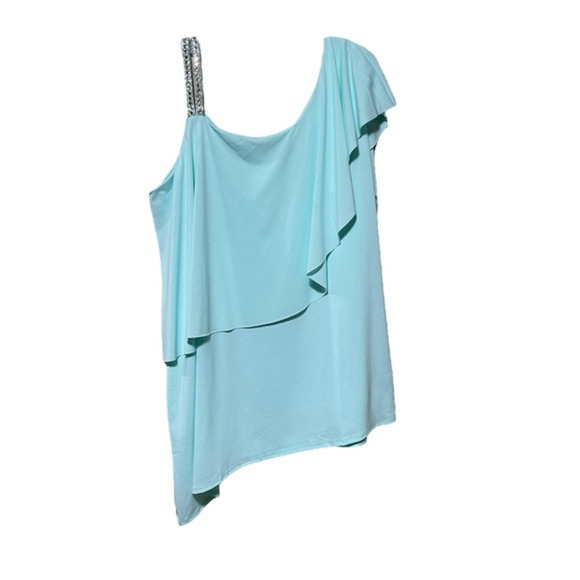 Belldini Flowy Ruffle Asymmetrical Rhinestone Mint Green 3X