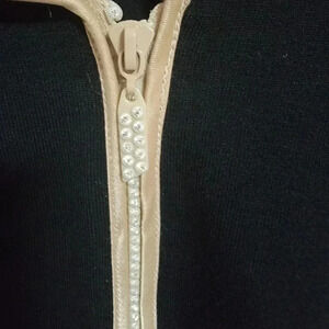 Belldini Gold Piping Ruffle Collar Rhinestone Zip Up Sweater