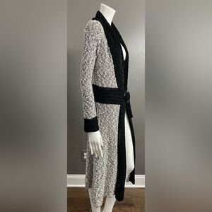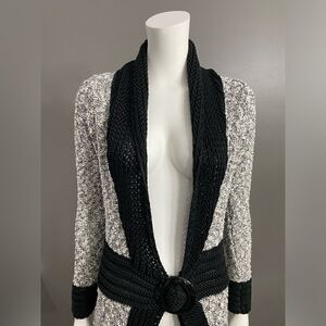 Belldini Large Black Combo Open-Front Belted Duster Cardigan Boucle Knit Size M