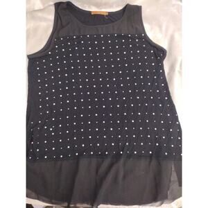 Belldini Shirt Womens 1X Black White Polka Dot Sleeveless Sheer Chiffon Hem Plus