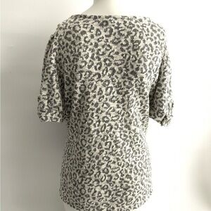 Belldini Short Sleeve Leopard Print Blouse Silver White M