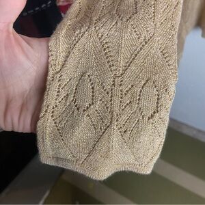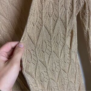 Belldini Size Xl Open Knit Cardigan Sweater Netural Brown Metallic Gold Boho