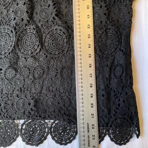Belldini Women Lace Blouse size L Short Sleeve 24” Length Floral Black