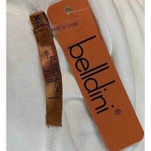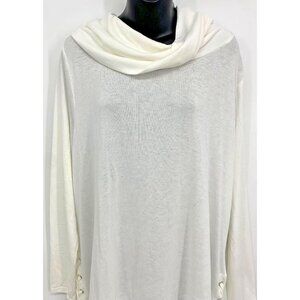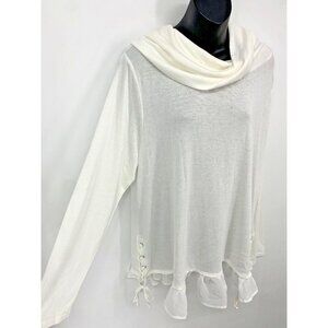 Belldini Women Top Blouse Plus Size 2X White Cowl Long Sleeve Ruffle Hem NWT NEW