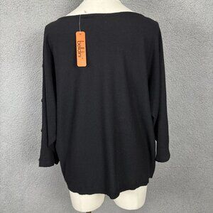 Belldini Women's Black With Gold Buttons Long Sleeve Sweater Top XL NWT's.
