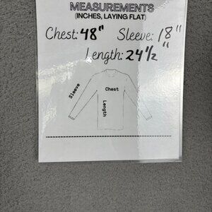 Chest = 48 inches (121.92 CM) Sleeve = 18 inches (45.72) Length = 24 1/2 inches (62.23 CM)