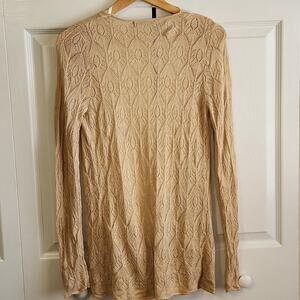 Belldini Women's Tan Gold Thread Cardigan Size SM Lightweight Tie Waist Neutral