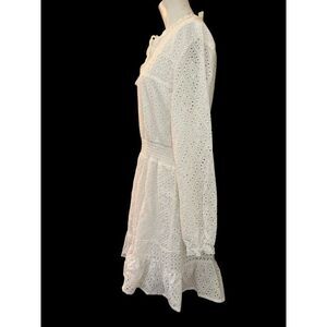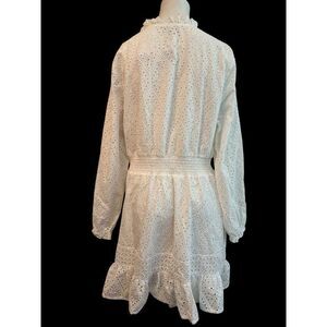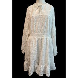 Belldini XL White Eyelet Casual Summer Dress Long Sleeve Lined Ruffled NWT