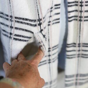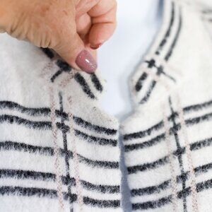Belldini size XL white/black windowpane check warm, fuzzy open front cardigan