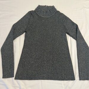Great condition fitted stylish sweater with beaded neck. Has stretch to it for the perfect fit.