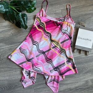Belle Amie Vintage Y2K 90s Abstract Babydoll Handkerchief Hem Pink tank top M