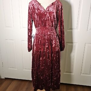 Belle BOHO, Kim Gravel Crushed Velvet Tiered Long Sleeve Dress. Meduim P SIZE PM