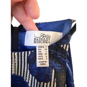 Tags: Belle, Badgley, Mischka, Floral, Blue, Dress, Striped, Sleeveless, Womens, Mini