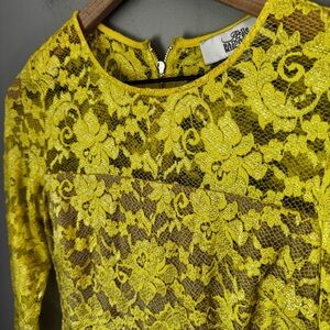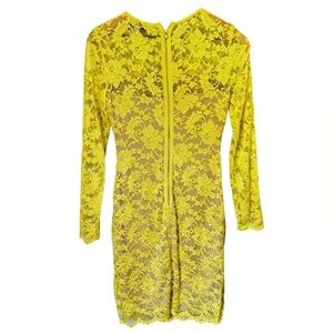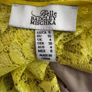 Belle Badgley Mischka Butter Yellow Bodycon Knee Length Lace Dress Sz 0/XS