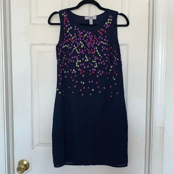 Good Condition. Belle Badgley Mischka Colorful Confetti Dot Beaded Shift Dress. Few lose beads as seen in pictures but still like perfect condition.