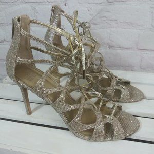 Belle Badgley Mischka Gold Shimmer/Sparkle Stiletto Strappy Heels