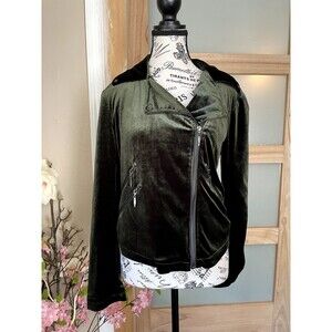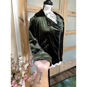 Belle Badgley Mischka Green Velvet Moto Jacket Women's Size Small Preowned