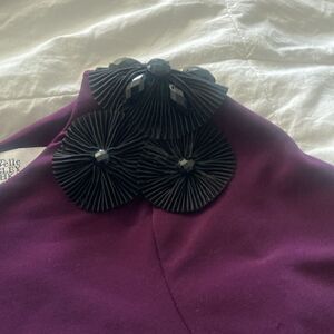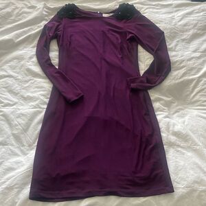 Belle Badgley Mischka Long Sleeve Dress Stretch knit dress. Black beaded applique flowers on shoulders. Fully lined. Hidden back zip.
