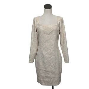 Belle Badgley Mischka Metallic Jaquard Rose Gold Ivory Dress Womens Size 10