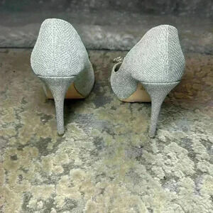 Belle Badgley Mischka Open Toe Silver Rhinestone Broach Heels - size 5.5