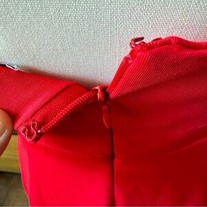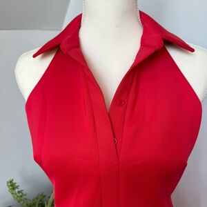 Belle Badgley Mischka Red High Low Collared Halter Dress Scuba Material size 4