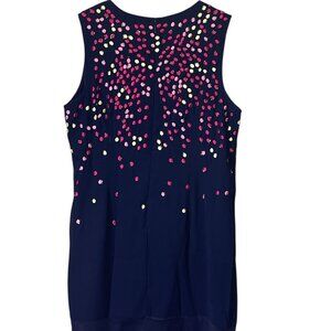 Belle Badgley Mischka Shift Dress – Size 12 – Beaded & Embroidered – Navy Pink