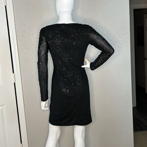 Belle Badgley Mischka Size 4 Dress Sequin Mesh Cowl Neck Black Gothic Glam
