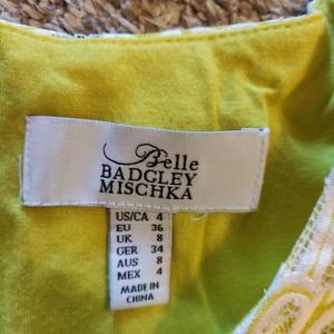 Belle Badgley Mischka Women's Dress 3/4 Sleeve Size 4 Yellow Flowers 4Q