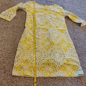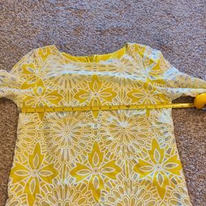 Belle Badgley Mischka Women's Dress 3/4 Sleeve Size 4 Yellow Flowers