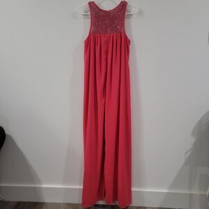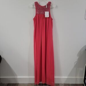 Belle Badgley Mischka Womens Maxi Dress Size 8 Pink Beaded Feminine Colorful
