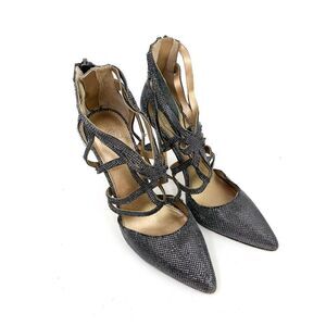 Belle Badgley Mischka Antique Glitter Strappy Zippered Heel Pump Size 7.5